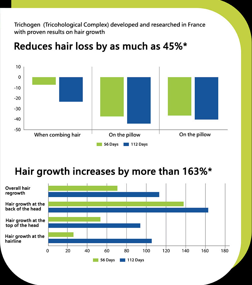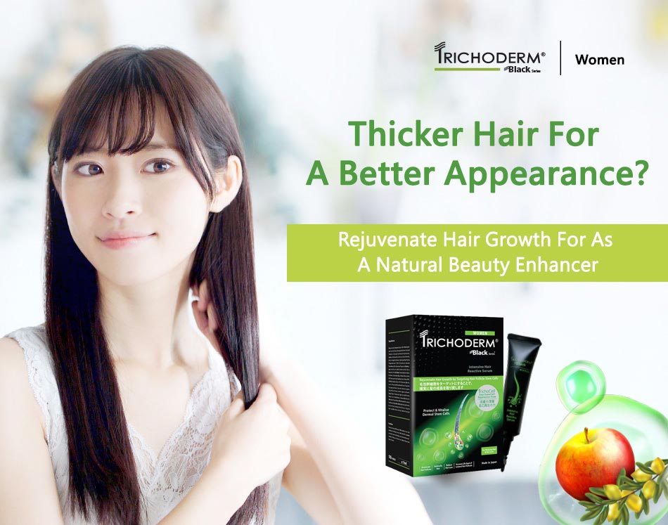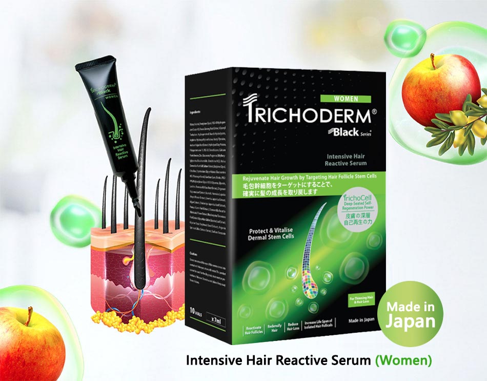 How do you achieve both the prevention of hair loss and boosting hair growth? The answer lies within a serum. Trichoderm Hair Reactive Serum is manufactured at the state of the art production facility in Japan. It unique ingredient, Trichogen, is developed and researched in France, with a proven result of stopping hair loss by 45%. Results have shown that it can also increase hair growth by up to 163%*. If thicker natural hair, you can now boost your attractiveness and confidence again!